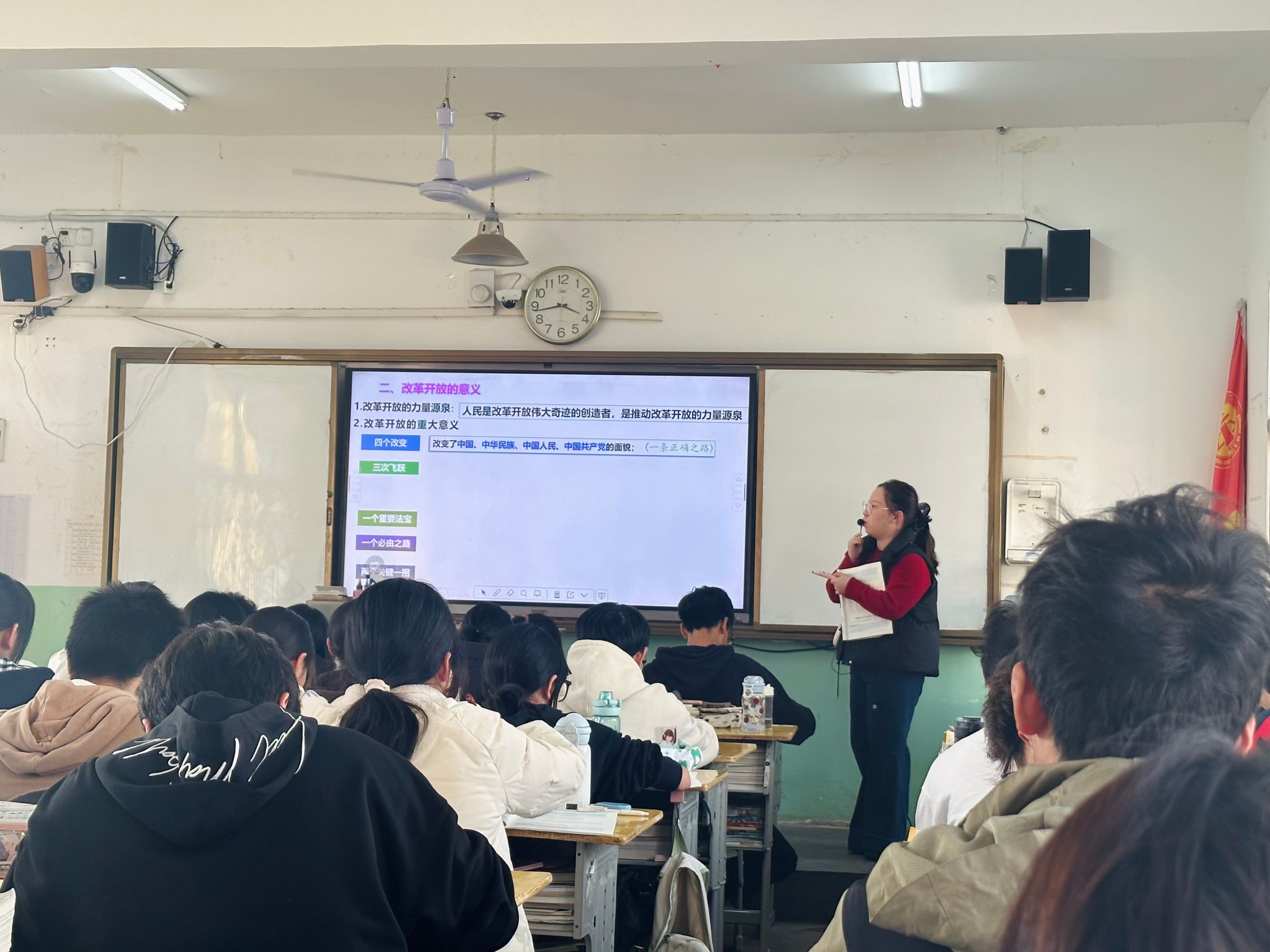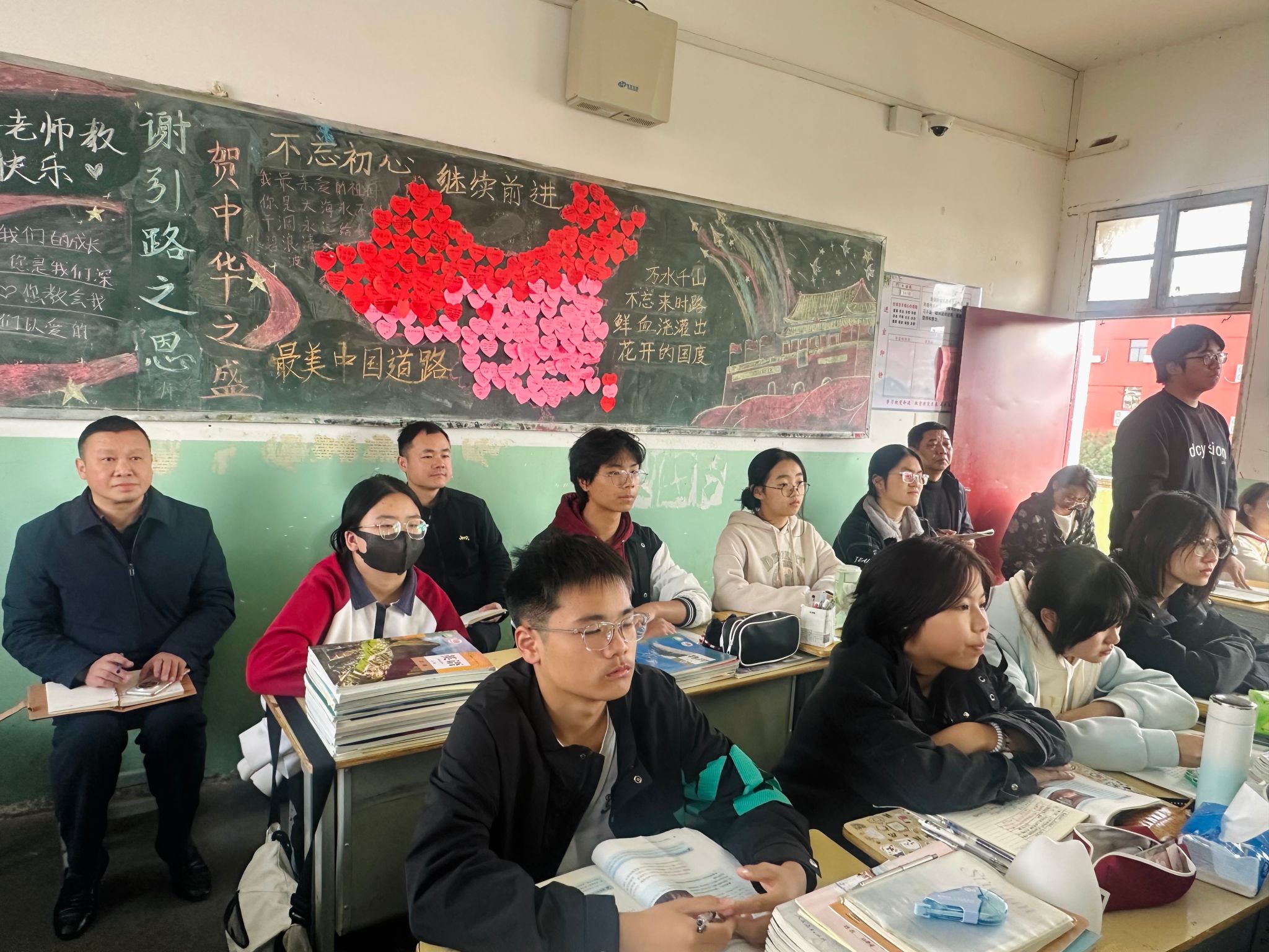 活动伊始,走访团队深入教学一线,观摩了实习生邓傈文的课堂教学实践。乐波院长一行认真聆听教学展示,从教学设计、内容把握到师生互动等环节进行了细致观察和专业指导。听课过程中,学院领导与教师全程专注,详细记录教学亮点,展现出严谨的专业态度。