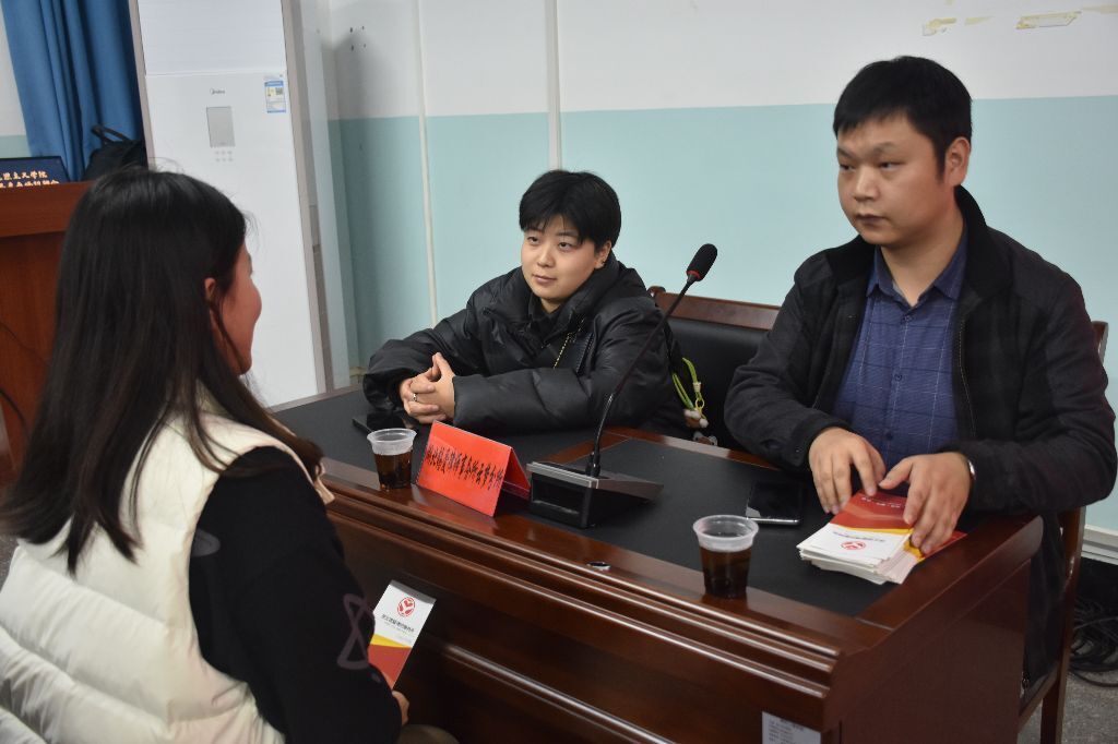 同期举办的马院专场招聘会汇聚了湖北金煜言律师事务所、湖北锡爱律师事务所及其云梦分所等三家优质法律实务单位,精准提供实习律师、授薪律师、专职执业律师等多类型岗位,覆盖法律实务全链条职业发展需求。现场创新设置“岗位需求对接区”与“职业发展咨询区”两大功能区:学院教师与用人单位代表组成“双导师”团队,围绕简历优化、职业规划、行业趋势等学生关切问题,提供“一对一”精准指导;学生可根据自身需求自主咨询岗位信息,与用人单位展开深度交流,实现双向互动、精准匹配。
