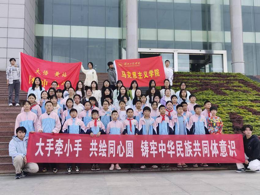 湖北日报客户端讯(通讯员任华艳、曾乐诗)为推动孝感市大中小学思政课一体化共同体建设,进一步铸牢中华民族共同体意识。11月14日,大悟县黄站镇组织团冲小学约50名师生前往湖北工程学院马克思主义学院共同开展“大手牵小手 共绘同心圆”思政实践研学活动。