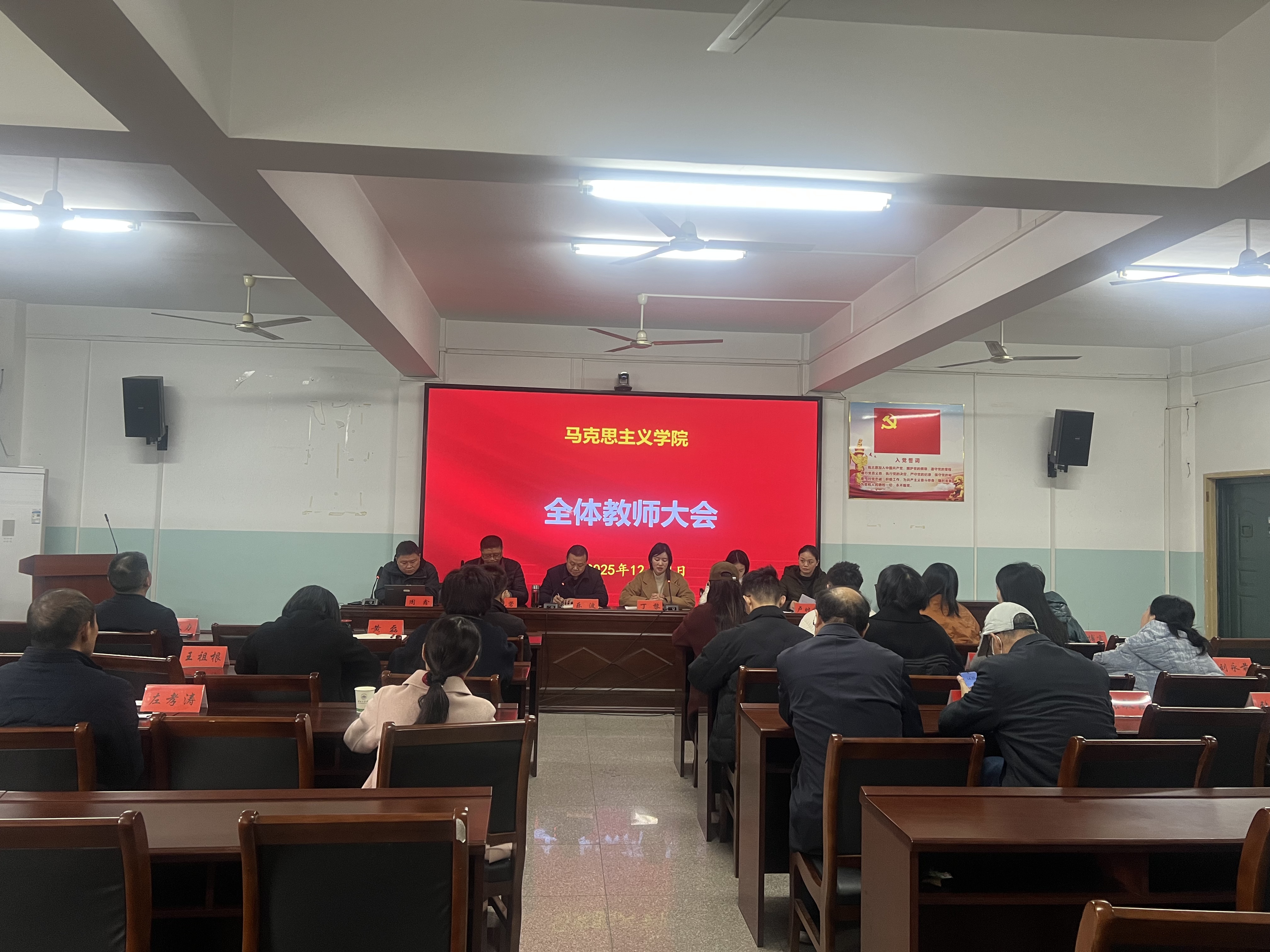 为深入学习贯彻党的二十届四中全会精神,统筹推进期末重点工作落地与学院长远发展任务,12月11日下午,我院召开全体教职工大会暨教职工政治理论学习会。学院领导班子成员及全体教职工参会,会议由学院院长乐波主持。