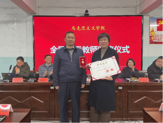 大会伊始,举行全国优秀教师证书和奖章颁发仪式。仪式由丁黎主持,乐波为获奖教师张敏颁发证书和奖章,表彰其在教育教学工作中取得的突出成绩,为全院教职工树立了学习榜样,进一步激发了教师们的工作热情和职业荣誉感。