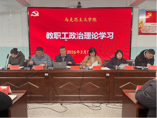 随后,进入教职工政治理论学习环节。乐波院长领学教育部社科司司长王日春《守正创新推动思政课建设和哲学社会科学自主知识体系构建》一文及省市 “十五五” 规划内容,带领全体教职工重温 2024 年习近平总书记对学校思政课建设作出的重要指示,专题学习 2026 年新时代高校思政课建设工作推进会精神,引导教职工深刻把握新时代思政课建设的新要求、新方向,切实把思想和行动统一到党中央关于思政课建设的决策部署上来。党委副书记魏伶俐通报学院民主生活会开展情况,全面总结会议成效与整改方向。丁黎书记传达学校2026年春季学期中层干部大会、全面从严治党工作会议等会议精神,并作树立和践行正确政绩观学习教育动员部署,要求全院教职工提高政治站位,将正确政绩观融入教育教学、科研工作全过程。